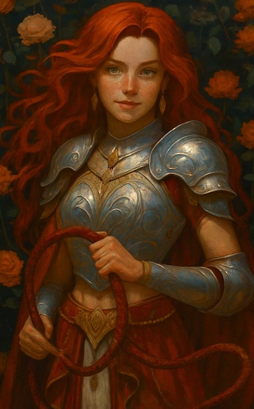 She mooned at the songs and tales the bards spun of romance, of knights and ladies, and love in all of its forms. And many a penitent or clergy who’d glimse who would comment how this fire haired, freckle faced girl must truly be blessed of the Goddess.